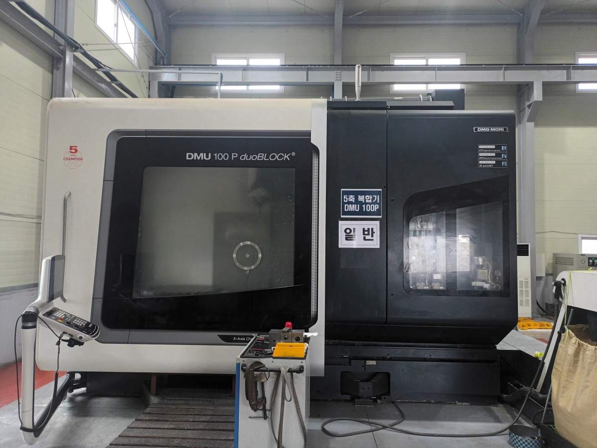 DMG MORI DMU 100P DUOBLOCK CNC 5 Axis Vertical Machining Center. 2016 model. Key features: 15,000 RPM spindle, 46.9 hp, 63 automatic tool changer, CELOS Siemens 840D control, coolant thru spindle, infrared measuring probe, and a range of axis travels.