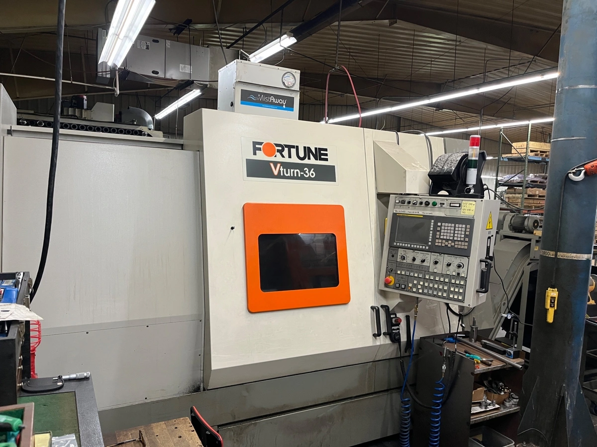 FORTUNE Vturn-36, 2022 model. This used 2-axis CNC lathe features 25.6" swing over bed, 33.7" machining length, and 17.5" turning diameter. Equipped with a 15" chuck, 50 hp spindle, and A2-11 spindle nose. Ideal for precise machining demands.
