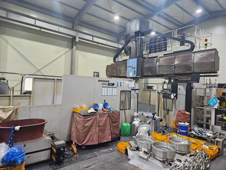 Used 2017 DOOSAN DCM 3250F VMC Gantry/Bridge Type CNC equipped with FANUC 31iB control, 90° angle head, 400mm extension, and thru spindle coolant. Features 106.3"x 200.8" table, 72,751.5 lb load capacity, 29.5 hp motor, and 6,000 RPM spindle speed.